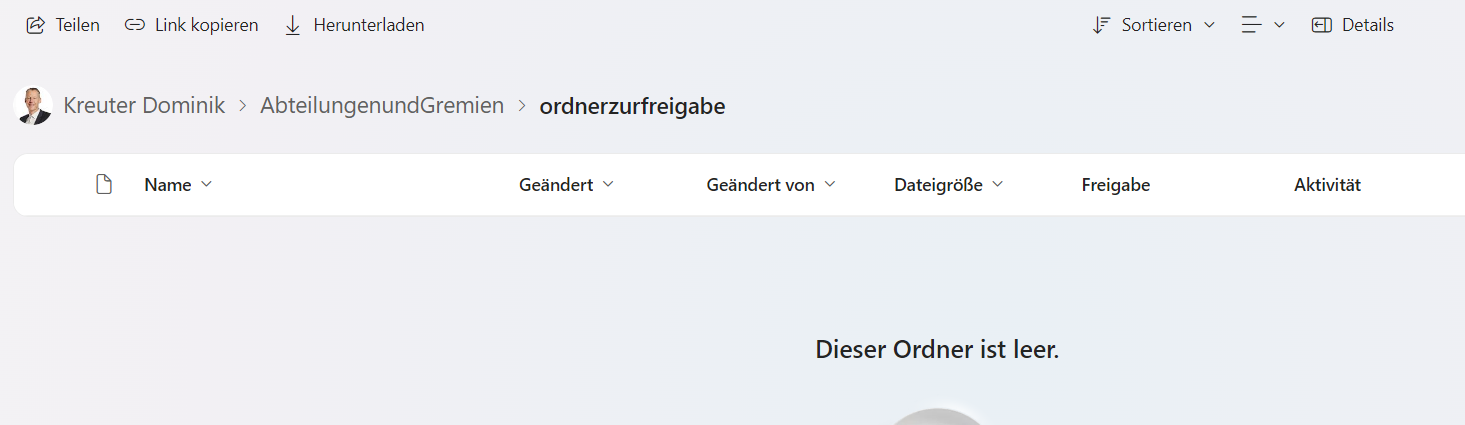 Ordner und Datenfreigabe mit OneDrive (Sicht einladende Person)